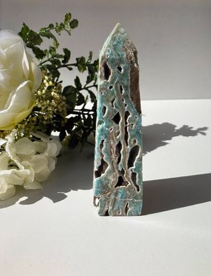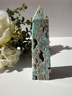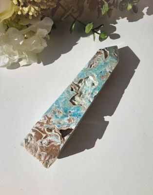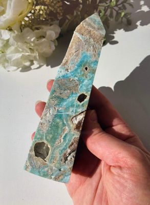 Blue Aragonite is a third eye, throat and heart chakra stone with a comforting, optimistic and joyful vibration. It enhances your ability to communicate particularly spiritually and aids you to move easily, empathize so it’s an asset to healers and spiritual teachers. It’s a stone of hope and assists you to be more compassionate in your dealings with other people and will help to relieve stress and anxiety. Avoid water as Blue Aragonite is soft and sensitive to moisture, instead gently wipe with a soft dry cloth.